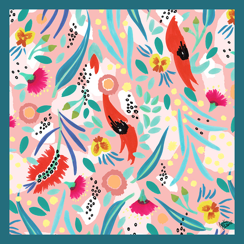 The popular ‘ABSTRACT OZ’ pink scarf in our new beautiful silk/cotton blend fabric!