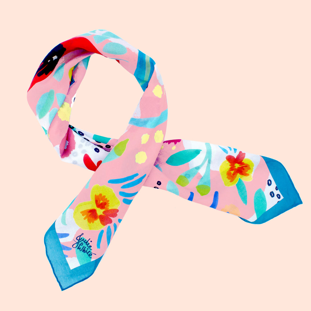 Our new 65cm square is perfect for adding a pop of colour to your outfit and can be worn ‘bandana style’ around the neck or as a small headband. The fabric is super soft and you get the luxe feel of silk but practical touch of soft cotton - totally wearable and great for on the go too!